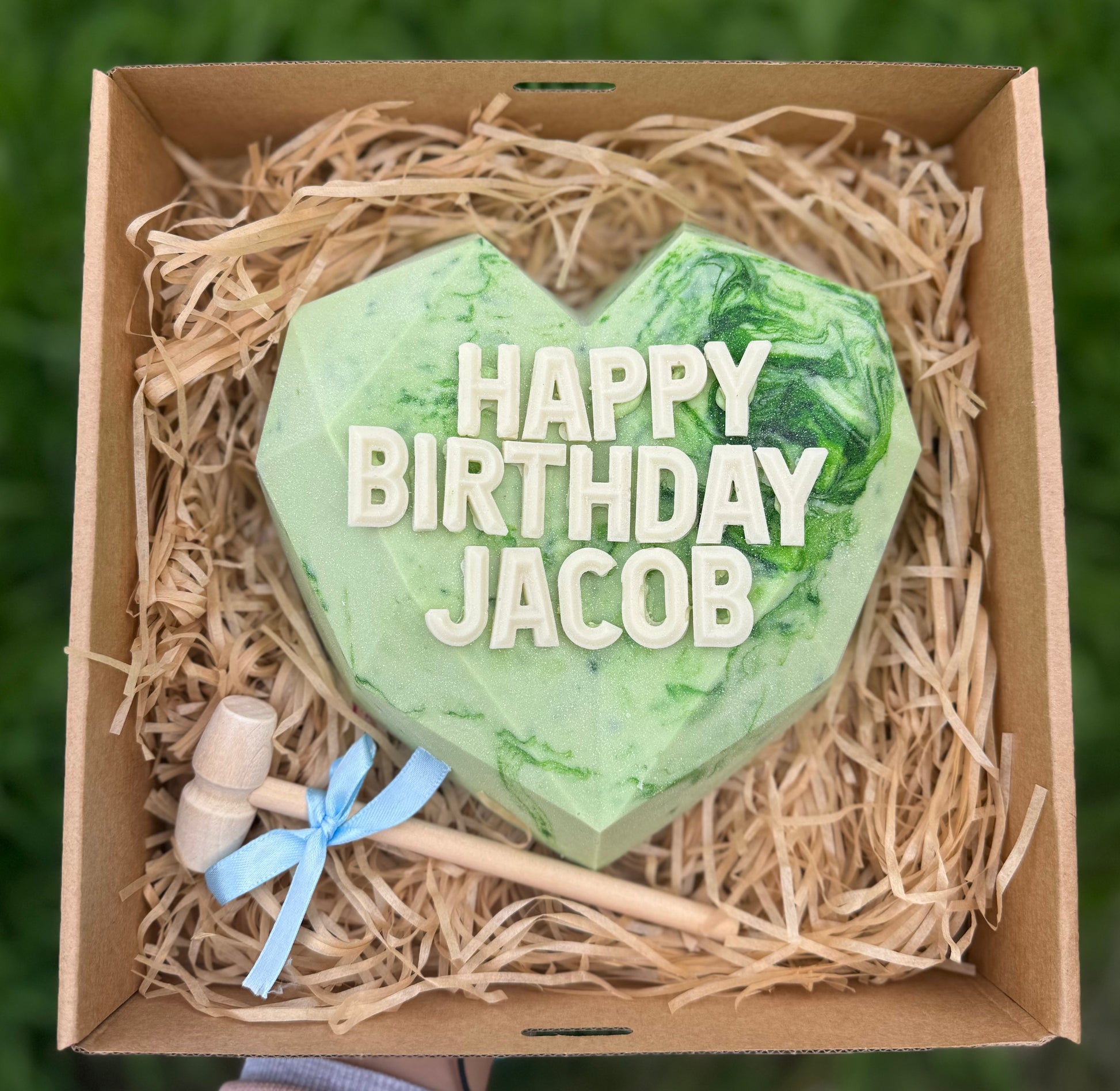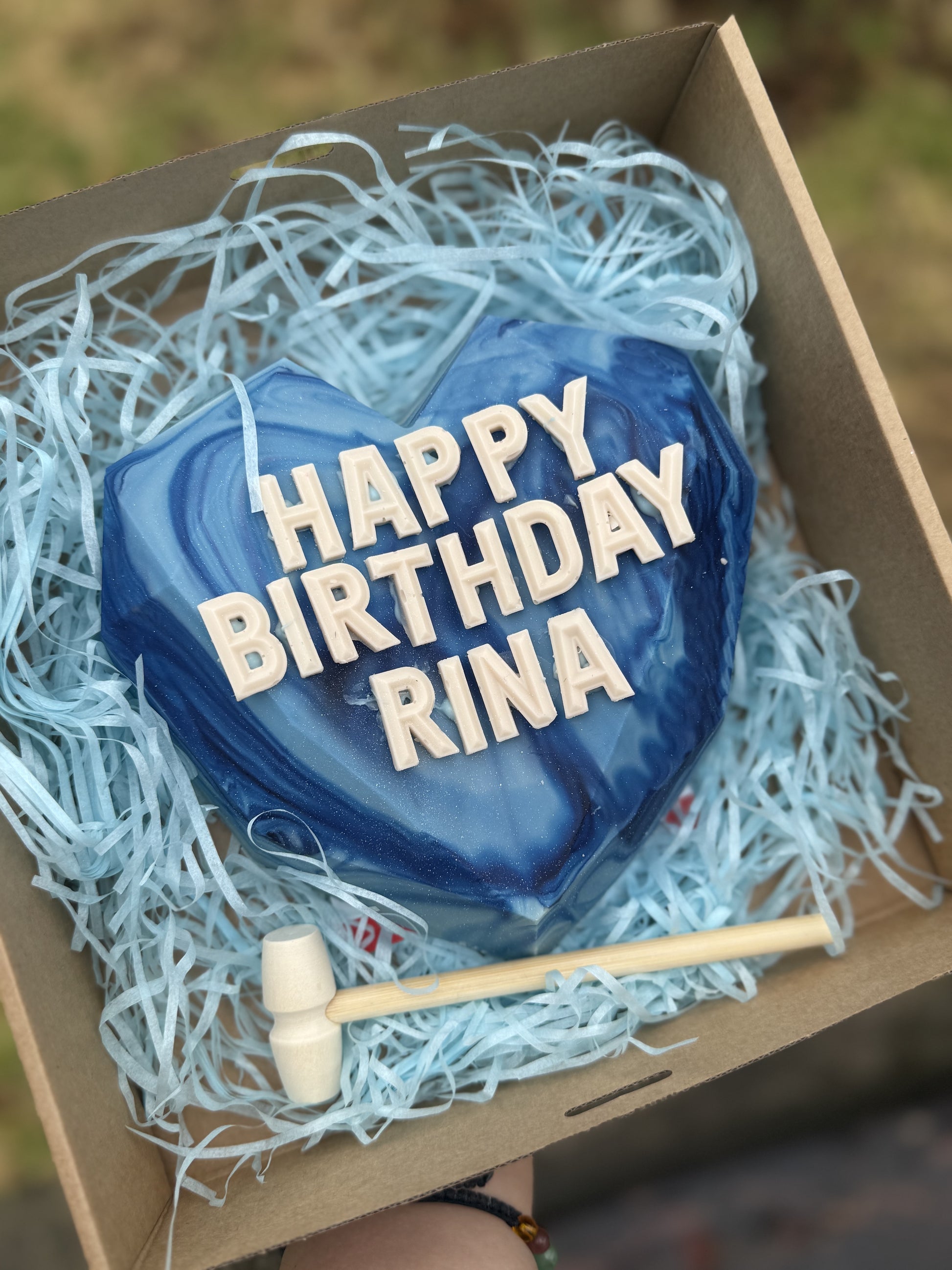 Featuring a stunning marbled chocolate finish, this piñata is filled with a sweet surprise assortment and comes with a mini hammer for the ultimate smash moment. Choose your colour palette and custom text to match your event theme — from soft neutrals to bold, luxe tones.